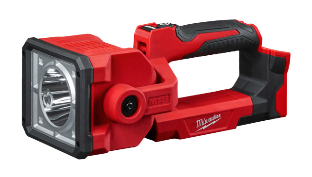 Der Lichtkopf der leichten und handlichen Akku-Handleuchte M18 SLED ist um 180° neigbar, zudem reicht ihr Lichtstrahl bis 650 m weit – damit lassen sich auch schwer zugängliche Stellen gut ausleuchten.