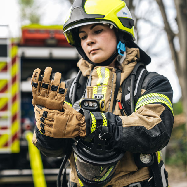 Hochergonomischer Feuerwehrhandschuh aus textilen Hightech-Materialien schützt auf höchstem Level