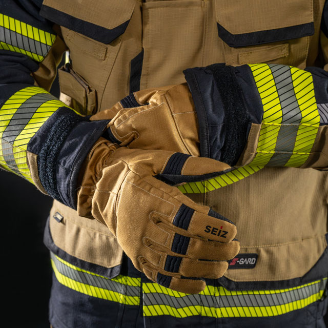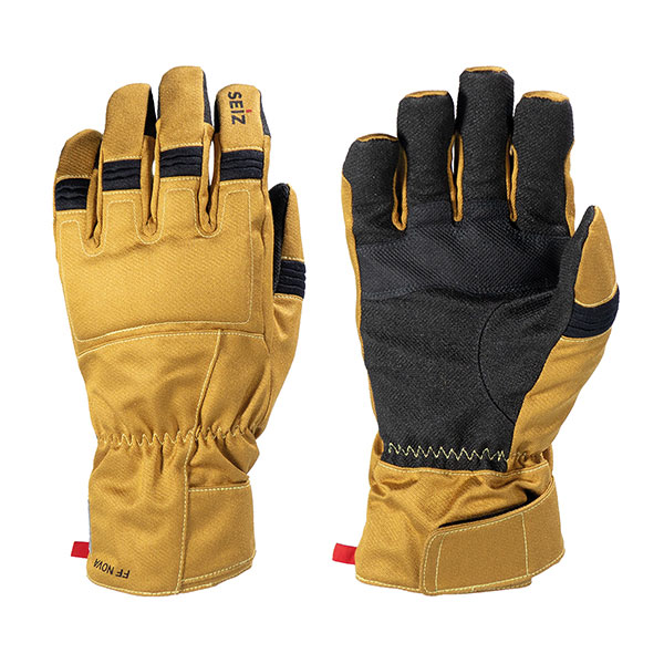 Der Feuerwehrhandschuh Fire-Fighter Nova von Seiz besteht aus einer Kombination aus hochleistungsfähigen Textilien und erreicht durch seine innovative Schnittform SeizFit eine optimale Passform und eine Fingerfertigkeit der höchsten Stufe 5. Dank nur einer Naht über den Fingerspitzen und spezieller Materialschichtung ist die Beweglichkeit deutlich verbessert. Der FastClose-Verschluss erlaubt schnelles und sicheres An- und Ausziehen und eine optimale Verbindung mit der Einsatzjacke.