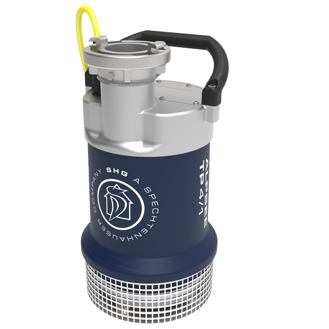 Die Tauchmotorpumpe ALPSEE TP 4/1 nach DIN 14425 der SHG GmbH ist perfekt geeignet für verunreinigtes Schmutzwasser mit Feststoffen bis zu einer Korngröße von 8 mm, etwa nach einem Hochwasser oder Überschwemmung durch Starkregen.
